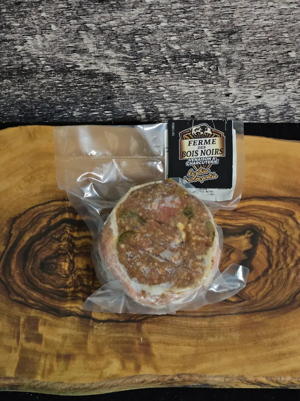 Ingrédients : Boeuf, porc, fromage grain, cornichon, bacon, épices